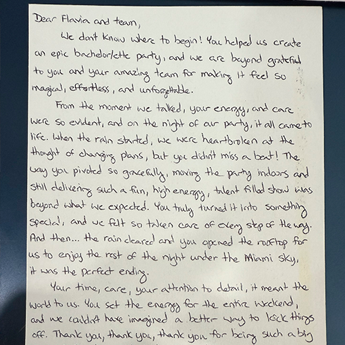 Our visual and experiential language draws from Miami itself: fluid, luminous, and full of motion. Whether it’s a waterfront celebration or a downtown product launch, we turn ordinary moments into experiences that move people.